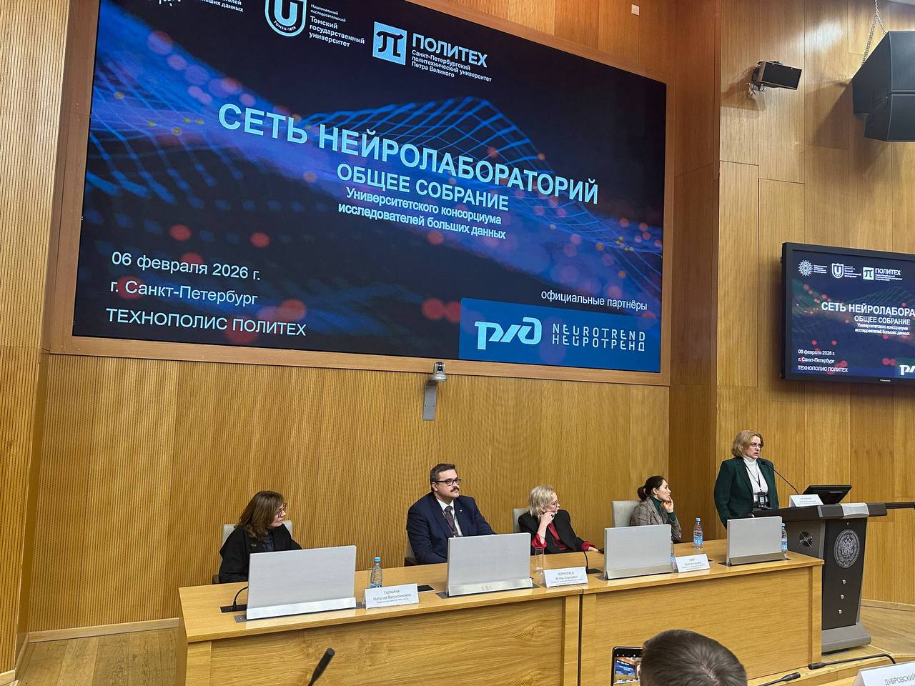 6 февраля на площадке Санкт-Петербургского политехнического университета Петра Великого (СПбПУ) Нейротренд провёл сессию сети нейролабораторий с участием представителей РЖД и ведущих вузов страны в рамках общего собрания Университетского консорциума исследователей больших данных.